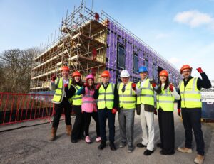 Topping out in front of The Oxford Trust’s Aspen Building at the Wood Centre for Innovation in Headington, Oxford L-R Dave Fishe Feb 27, 2026